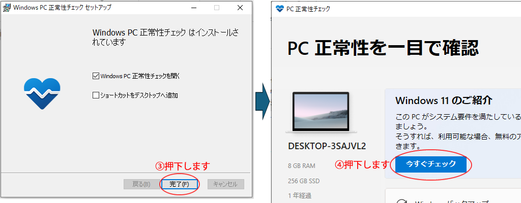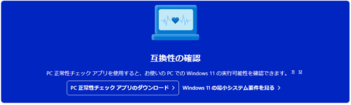 PC正常性のチェックアプリをダウンロードして、お使いのPCがWindows11にアップグレードできるかを確認することができます。